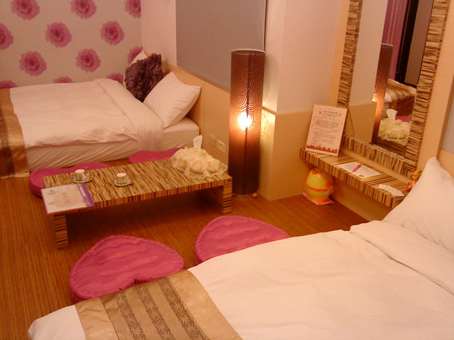 ps.四人房的天使套房~桌上是天使姐姐準備的逢甲吃喝玩樂的旅遊導覽~把桌子搬開中間可以再睡兩個人喔!~空間蠻寬敞的!~